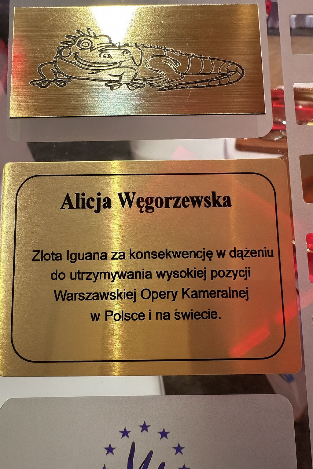 Z ogromnym wzruszeniem odebrałam Złotą Iguanę – nagrodę przyznaną za konsekwencję w dążeniu do utrzymywania wysokiej pozycji Warszawskiej Opery Kameralnej w Polsce i na świecie.…
